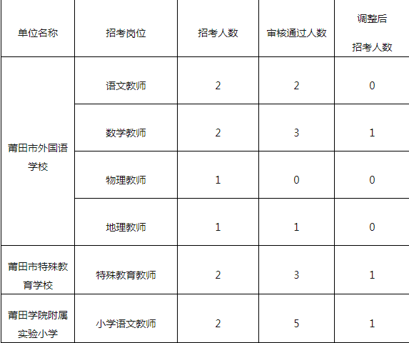 關于調整2020年福建莆田市市直學校公開招聘新任教師部分崗位招考人數(shù)的公告