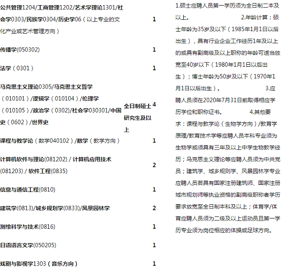 三、湖南科技學(xué)院2020年專任教師招聘計(jì)劃及要求一覽表