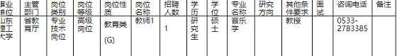 根據(jù)中共山東省委組織部、山東省人力資源和社會(huì)保障廳《關(guān)于2020年省屬事業(yè)單位公開招聘工作人員有關(guān)問題的通知》(魯人社發(fā)〔2019〕40號(hào))要求,結(jié)合工作需要,我校擬面向社會(huì)公開招聘高級(jí)崗位工作人員1名。具體崗位及條件詳見《省屬事業(yè)單位公開招聘工作人員崗位匯總表》。