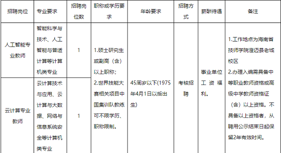 海南教師招聘 海南省技師學(xué)院2020年面向全球考核招聘事業(yè)編制教師公告【2名】