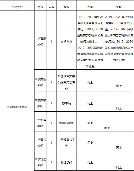 福建教師招聘 莆田仙游縣友誼學(xué)校2020年碩士研究生教師招聘【8人】