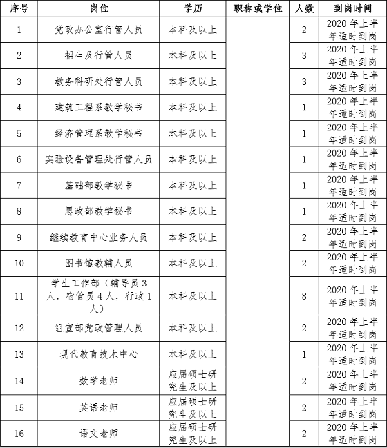 為了順利實現(xiàn)學院建設發(fā)展目標,提高辦學水平和人才培養(yǎng)質量,現(xiàn)面向社會公開招聘員工,歡迎優(yōu)秀人才加盟。