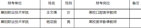 湖北教師招聘 襄陽職業(yè)技術(shù)學(xué)院2019年公開招聘教師擬聘用人員名單公示