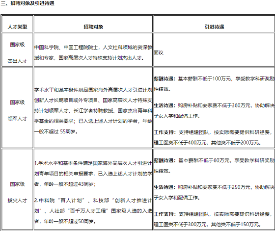 3.具備沖擊國家級青年人才計劃潛力的優(yōu)秀人才,學校重點支持。凡依托我校申報國家級青年人才項目,進入會評階段但最終未入選者,將比照國家級青年人才部分待遇引進。