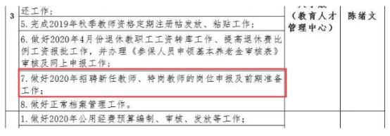 2020年3月31日六安金安區(qū)教育局工作計(jì)劃中,明確指出《4月份做好2020年招聘新任教師、特崗教師的崗位申報(bào)》及前期準(zhǔn)備工作。