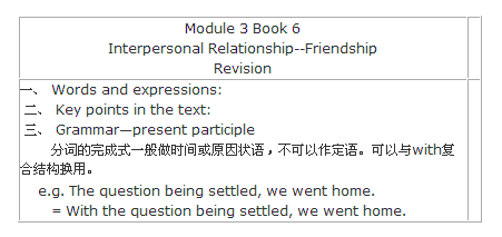 This module is mainly about friendship. Such topic is related to daily life, so it is helpful to raise learning interests of students and it will be also helpful to improve theirdaily behaviour.
