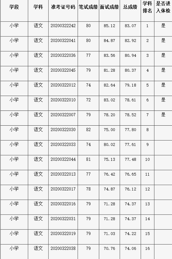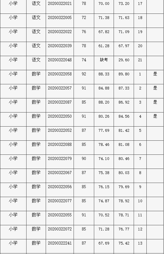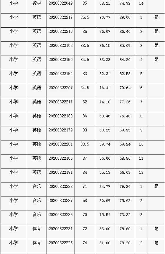 根據(jù)《華東師范大學(xué)蘇州灣實驗小學(xué)2020年招聘公告》,由于通過面試的骨干教師人數(shù)少于擬招聘的骨干教師數(shù),故相應(yīng)學(xué)科名額調(diào)劑至教師招聘人數(shù)。2020年4月5日組織教師面試,現(xiàn)將成績予以公示,公示時間:2020年4月7日——2020年4月13日。