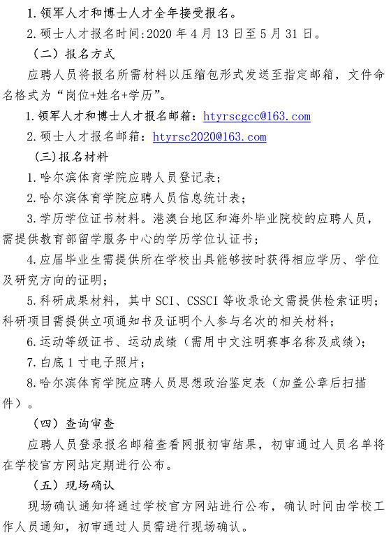 黑龍江哈爾濱體育學(xué)院2020年招聘人才公告【68人】(含教師崗),郵箱報名 歡迎加入黑龍江教師考編群,群號:518612640,考情、招聘信息早知道