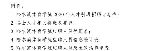 附件1.哈爾濱體育學(xué)院2020年人才引進(jìn)招聘計劃表.xlsx 附件3.哈爾濱體育學(xué)院應(yīng)聘人員登記表.doc |