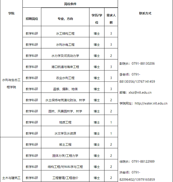 江西教師招聘 南昌工程學(xué)院2020年高層次人才招聘公告【91人】長期招聘