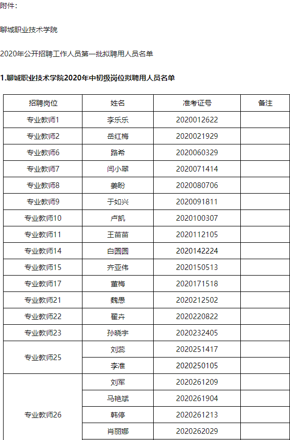 附件:聊城職業(yè)技術(shù)學(xué)院2020年公開招聘?jìng)浒钢乒ぷ魅藛T第一批擬聘用人員名單