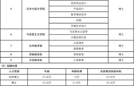 2.對(duì)于我校引進(jìn)的學(xué)科帶頭人薪酬年薪40萬(wàn)起,科研啟動(dòng)經(jīng)費(fèi)、安家費(fèi)及購(gòu)房補(bǔ)貼等其他所有待遇實(shí)行¡°一人一議¡±,引進(jìn)人才除享受學(xué)校優(yōu)惠政策外,符合省市引進(jìn)人才優(yōu)惠待遇的,同時(shí)享受省市優(yōu)惠政策。