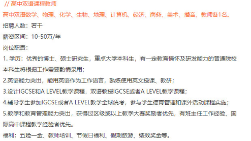 雙語初中、雙語高中、雙語小學(xué):