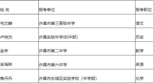 河南教師招聘 許昌市直學校2020年考核招聘教師體檢遞補人員名單