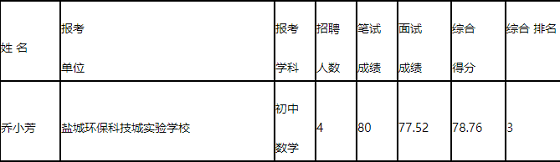 2019年亭湖區(qū)公開(kāi)招聘教師中,報(bào)考鹽城環(huán)?萍汲菍(shí)驗(yàn)學(xué)校初中數(shù)學(xué)學(xué)科的喬小芳考生因懷孕生產(chǎn)延遲部分體檢項(xiàng)目。根據(jù)有關(guān)規(guī)定,完成體檢所有項(xiàng)目并合格后方可進(jìn)入考察程序。該考生已完成體檢全部項(xiàng)目且考察均合格,現(xiàn)予以公示。