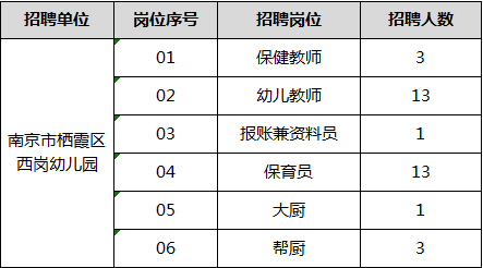 具體條件詳見附件一:《南京市棲霞區(qū)西崗幼兒園2020年工作人員公開招聘崗位信息表》。