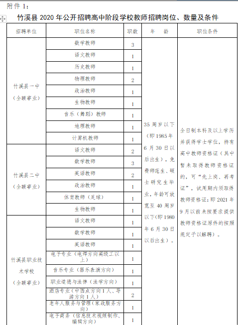 1.竹溪縣2020年公開招聘高中階段學校教師招聘崗位、數(shù)量及條件