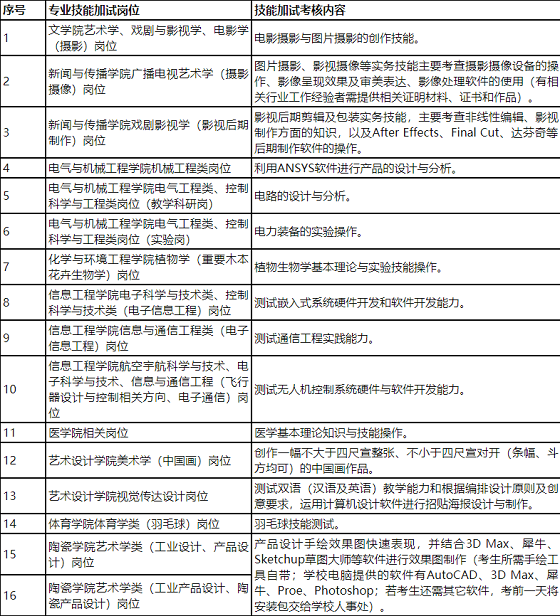 注:專業(yè)技能加試結(jié)束后當(dāng)天在學(xué)校人事處主頁公布成績;專業(yè)加試合格者(≥60分)進(jìn)入筆試。