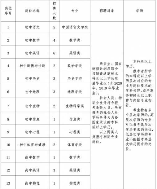 我校本次招聘臨時(shí)聘用教師34名,具體招聘崗位如下: