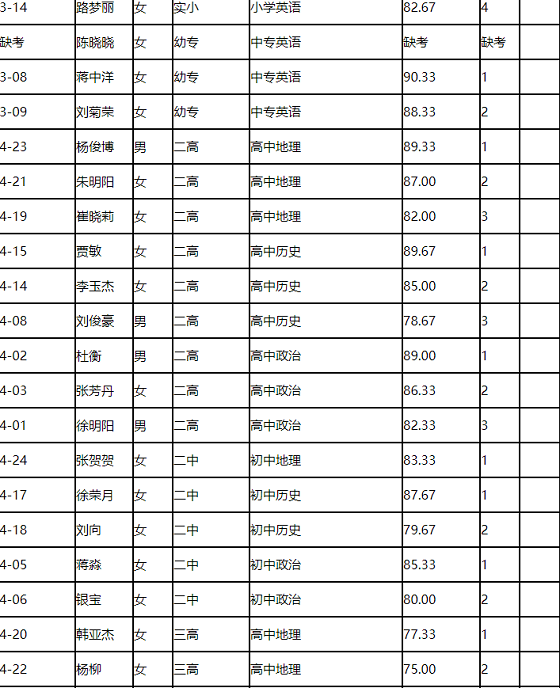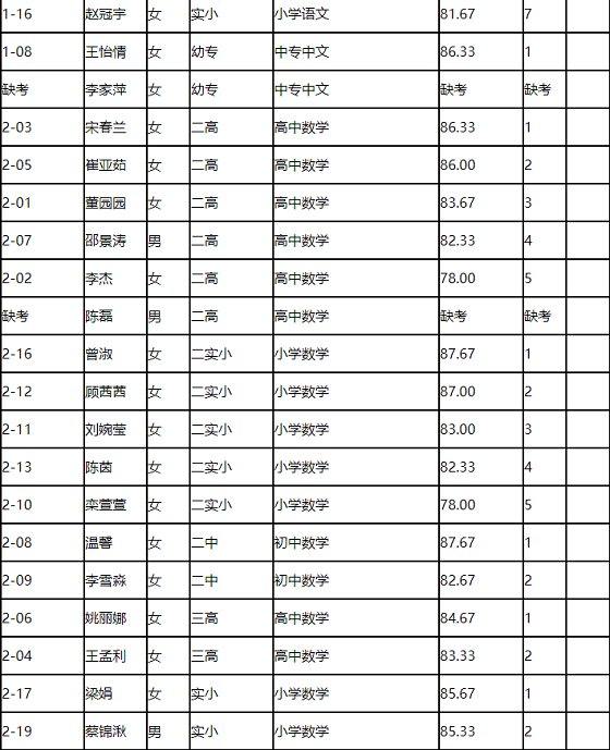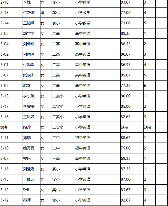河南駐馬店市直學(xué)校2020年校園招聘教師面試成績公示