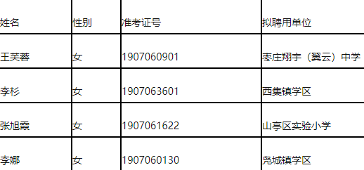 山東教師招聘 棗莊山亭區(qū)2019年公開招聘教師補充擬聘用人員公示