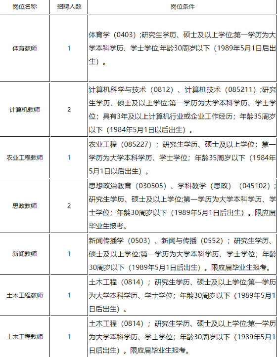 備注:1.以上崗位條件中專業(yè)名稱后括號(hào)中的數(shù)字為學(xué)科專業(yè)代碼。