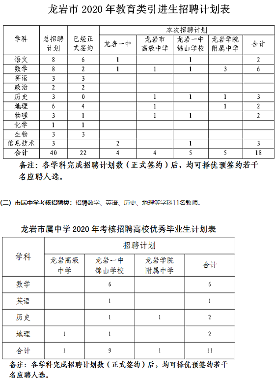 (一)市屬中學(xué)教育引進(jìn)類:招聘語文、數(shù)學(xué)、英語、物理、化學(xué)、生物、政治、歷史、地理、信息技術(shù)等學(xué)科18名教師。根據(jù)《福建省龍巖市2020年教育類引進(jìn)生招聘公告》精神,“2020年龍巖市屬學(xué)校計(jì)劃引進(jìn)優(yōu)秀高校畢業(yè)生40名,在引進(jìn)優(yōu)秀高校畢業(yè)生數(shù)量達(dá)不到40名時(shí),允許進(jìn)行學(xué)科調(diào)劑,調(diào)劑的順序?yàn)樾畔⒓夹g(shù)、語文、數(shù)學(xué)、英語、物理、化學(xué)、生物、歷史、地理、政治”。