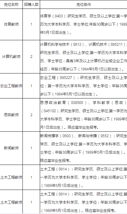 備注:1.以上崗位條件中專業(yè)名稱后括號(hào)中的數(shù)字為學(xué)科專業(yè)代碼。