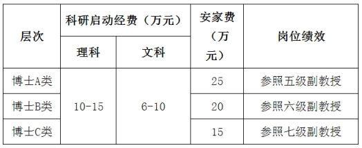 聘用人員來校后,按照山西省和學校有關政策享受相應工資待遇。經(jīng)專家評審組認定后,根據(jù)引進博士的類型和層次的不同,分別對應下表享受相關待遇: