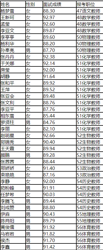 山東濟寧汶上縣2020年事業(yè)單位“優(yōu)才計劃”(教育類)面試成績