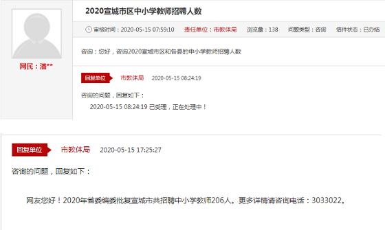 回復(fù)單位:市教體局2020-05-15、17:25:27