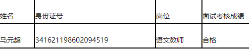 根據(jù)《思明區(qū)教育系統(tǒng)非在編聘用人員公開招聘實施細則(廈思教〔2014〕95號)》及《廈門市定安小學非在編人員招聘簡章》要求,現(xiàn)將擬聘人員的面試考核結果公示如下: