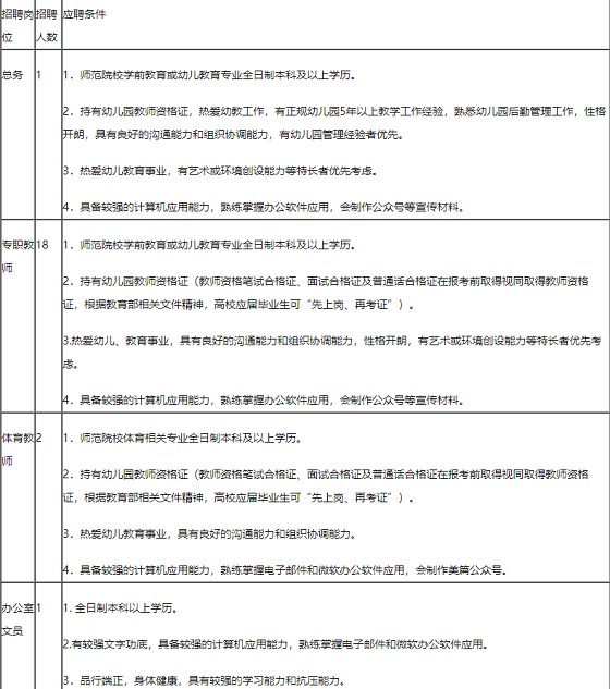 2.資格初審:閩南師范大學(xué)附屬金投幼兒園招聘工作小組對(duì)應(yīng)聘人員進(jìn)行資格初審,資格初審截止時(shí)間為2020年6月21日。