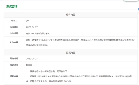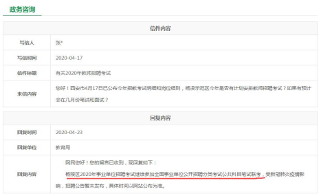西安市4月17日已公布今年招教考試明細和崗位細則,楊凌示范區(qū)今年是否有計劃安排教師招聘考試?如果有預計會在幾月份筆試和面試?