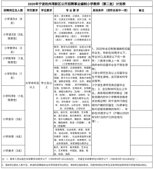 5.新錄用人員由寧波杭州灣新區(qū)教育文體局統(tǒng)一分配到下屬小學(xué)工作并至少服務(wù)滿5年(包括試用期)。