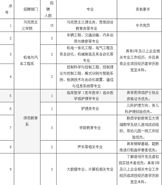 1.學(xué)歷:全日制碩士研究生及以上(具有國家職業(yè)資格認(rèn)證的高級(jí)技師及以上的高技能人才、具有副高級(jí)及以上職稱的高層次人才、“985”、“211”學(xué)校畢業(yè)生學(xué)歷放寬至本科);