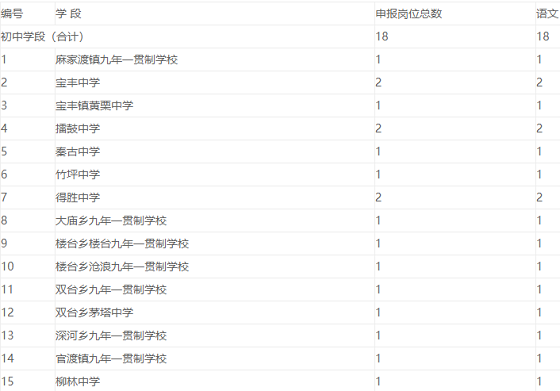 竹山縣2020年義務(wù)教育學(xué)校公開招聘教師211名。含:新機(jī)制教師18名(初中語文18名);自主招聘教師(地方計(jì)劃)193名,其中:初中學(xué)段66名(數(shù)學(xué)20名、英語15名、政治8名、物理5名、化學(xué)5名、生物5名、地理8名),小學(xué)學(xué)段127名(語文30名、數(shù)學(xué)30名、英語25名、信息技術(shù)10名、體育10名、音樂4名、美術(shù)11名、科學(xué)7名)。具體崗位如下: