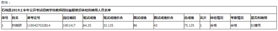 四川雅安石棉縣2019年上半年考試招聘學(xué)校教師因妊娠期推遲體檢擬聘用人員名單公示