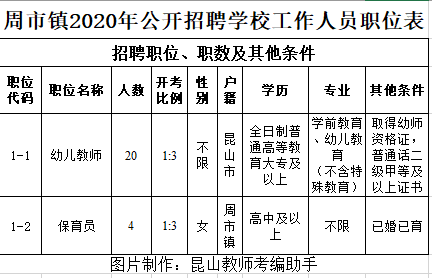 招聘崗位及條件等詳見《周市鎮(zhèn)2020年公開招聘學(xué)校工作人員職位表》(附件1)