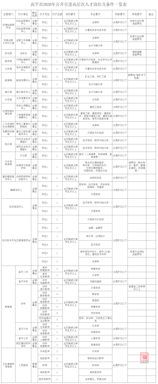 附件:1.高平市2020年公開引進高層次人才崗位及條件一覽表