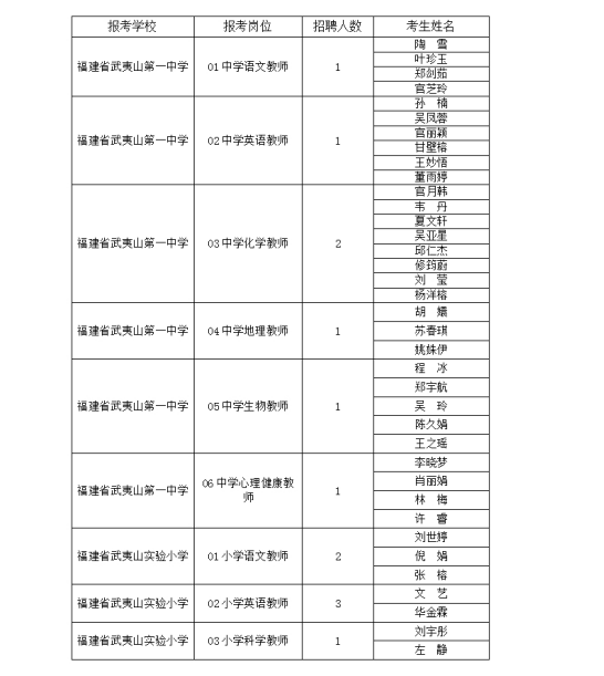 福建南平武夷山市2020年中小學(xué)第三屆“人才南平校園行”專項招聘面試公告