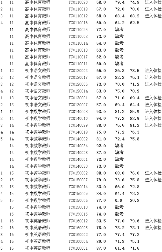 2020年太倉(cāng)市教育系統(tǒng)公開(kāi)招聘教師考試面試成績(jī)及總成績(jī)現(xiàn)予以公布(6月14日批次),本次招考根據(jù)崗位計(jì)劃招錄人數(shù)(部分崗位按核減后人數(shù)),在各崗位成績(jī)合格者中按總成績(jī)從高到低確定進(jìn)入體檢人選。領(lǐng)取體檢通知單時(shí)間:6月15日下午14:00—16:30。領(lǐng)取地點(diǎn):太倉(cāng)市青少年活動(dòng)中心(太倉(cāng)市東倉(cāng)南路98號(hào)),請(qǐng)?jiān)谝?guī)定時(shí)間前來(lái)簽約,逾期不予辦理。未進(jìn)入簽約人員請(qǐng)?jiān)谙嗤瑫r(shí)間和地點(diǎn)領(lǐng)回相關(guān)原件。