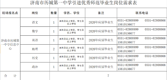 2020年濟(jì)南市歷城第一中學(xué)引進(jìn)
