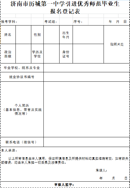 我已仔細(xì)讀過《2020年濟(jì)南市歷城第一中學(xué)引進(jìn)優(yōu)秀畢業(yè)生公告》,理解其內(nèi)容,符合報考條件。我鄭重承諾:本人所提供的個人信息、證明材料、證件等真實(shí)、準(zhǔn)確,并自覺遵守事業(yè)單位招聘的各項(xiàng)規(guī)定,誠實(shí)守信、嚴(yán)守紀(jì)律,認(rèn)真履行應(yīng)聘人員的義務(wù),保持通訊暢通,對因提供有關(guān)信息證件不實(shí)或違反有關(guān)紀(jì)律規(guī)定所造成的后果,本人自愿承擔(dān)相應(yīng)的責(zé)任。本人對本次報考態(tài)度嚴(yán)肅,如被錄取,嚴(yán)格遵守協(xié)議,一旦發(fā)生違約,本人自愿承擔(dān)相關(guān)法律責(zé)任。