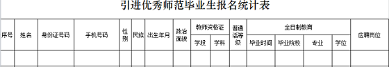 附件4:引進(jìn)優(yōu)秀師范畢業(yè)生報名統(tǒng)計(jì)表