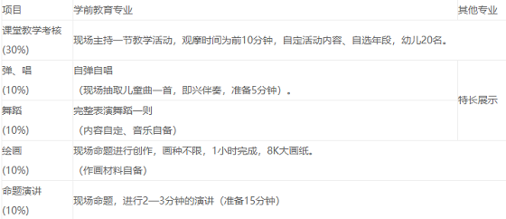 音樂專業(yè):必須參加學(xué)前教育類自彈自唱、舞蹈考核,再加專業(yè)特長展示。