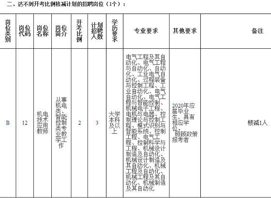 2020年江蘇省太倉中等專業(yè)學(xué)校備案制教師招聘報(bào)名工作已經(jīng)結(jié)束,根據(jù)招聘簡(jiǎn)章規(guī)定,經(jīng)研究決定對(duì)下列因達(dá)不到開考比例的招聘崗位進(jìn)行核銷、核減,具體公告如下: