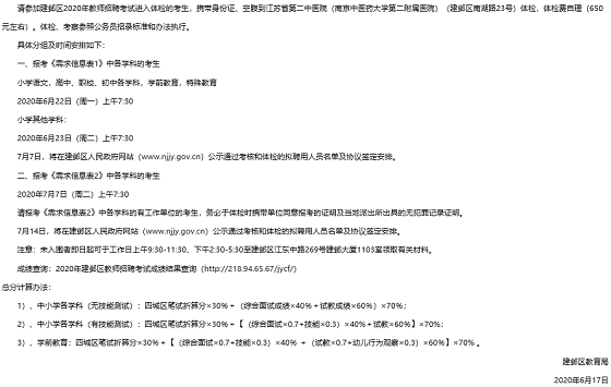 2020南京教師招聘 江蘇南京市建鄴區(qū)教師招聘考試成績結(jié)果查詢及體檢安排通知