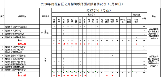 2020年南京教師招聘 江蘇南京雨花臺區(qū)公開招聘面試報名情況(6月16日)