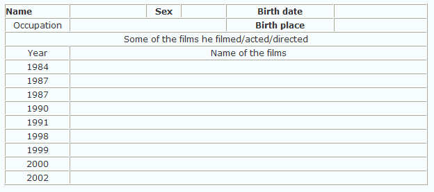 1. Try to find information about Zhang Yimou and fill in the table before class.